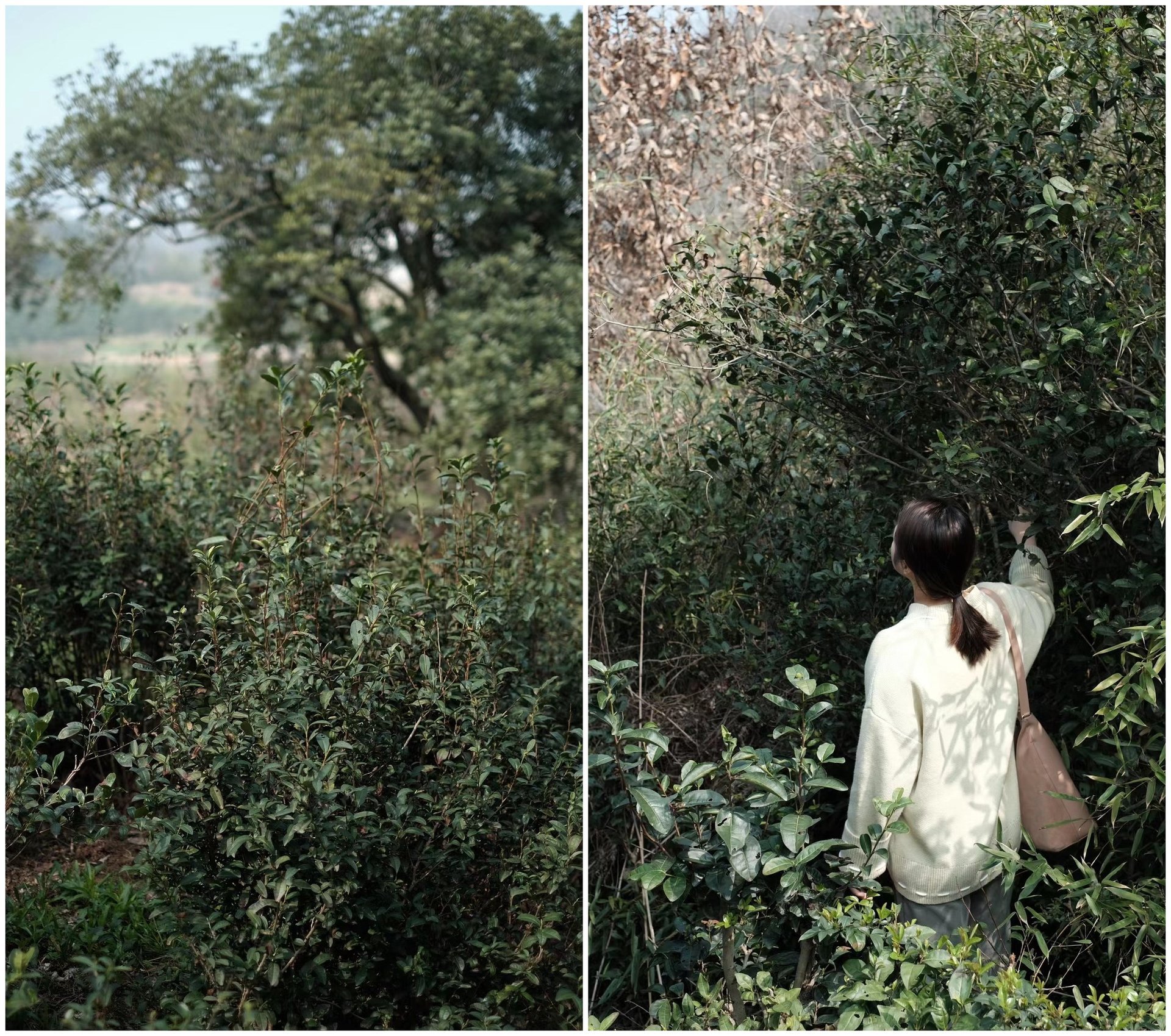 (图为茶树实地考察,野碧螺的茶树要比人高出许多,周围植被也很茂密)