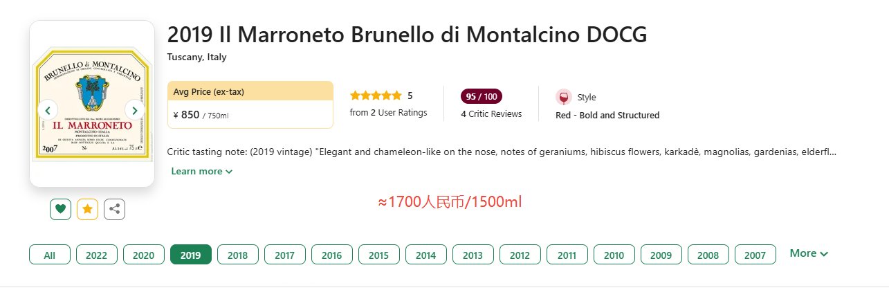 而且从2010年以来,几乎每个年份都位列Brunello高分强烈,价格每年都在飞速暴涨,这次的2019年份,可要眼疾手快一点,千万不要错过!
