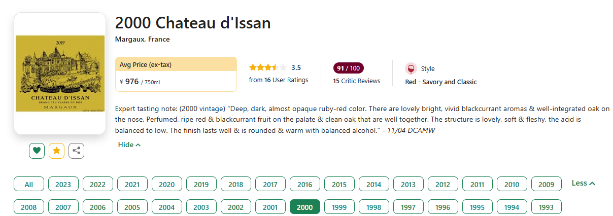 2000年份恰逢产区WA 94优年加持下,不仅揽获Decanter 94、RP 93、JL 93、JA 93等名家好评高分,更是获得了2004 Le Guide Hachette des Vins 二星推荐,实力非常不俗!免子已尽力做到持平国际均价,何时再有不得而知!且喝且珍惜啊~